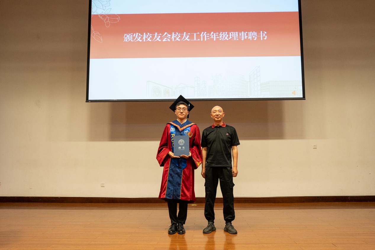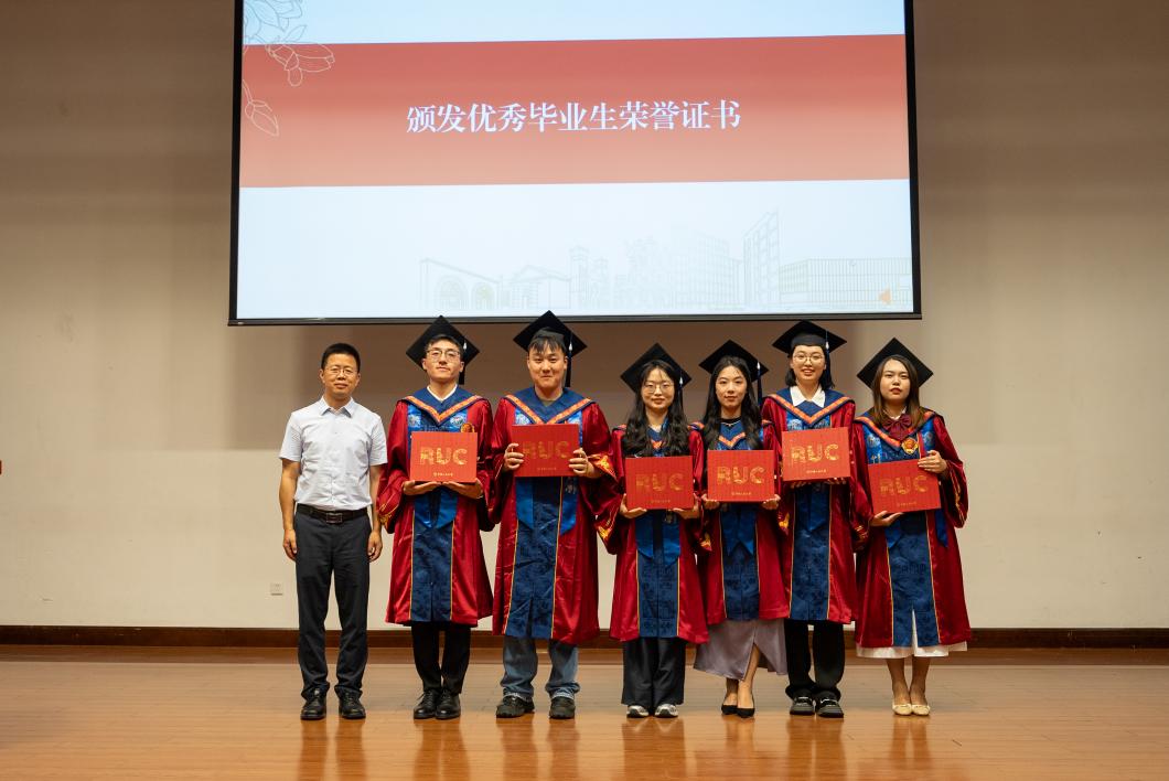 在发言环节结束后,欢送会进入颁发优秀毕业生荣誉证书环节。田传锋书记、王建华院长、王钰副书记分别为北京市优秀毕业生、欧美a片 校级优秀毕业生、欧美a片 院级优秀毕业生颁发荣誉证书,盛希文副院长上台颁发校友会校友工作年级理事聘书。